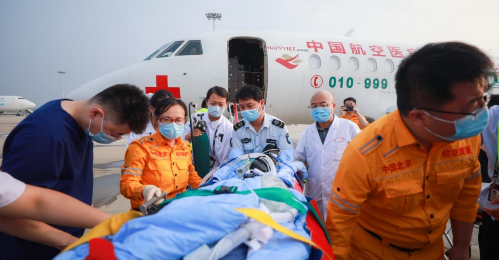 近日,在自治区卫生健康委、新疆医科大学全力协调与支持下,经疆内、疆外专家会诊多次讨论,新疆医科大学第一附属医院医护团队开展了三次长达1224小时的体外膜肺氧合(ECMO)支持治疗,成功救治一名因重症肺炎合并多器官功能衰竭的高龄患者,在中国航空医疗救援的支持下,医院派出医护转运小组将患者安全转运至山东省立医院重症医学科继续治疗。