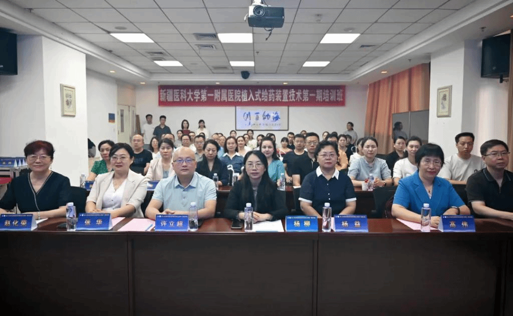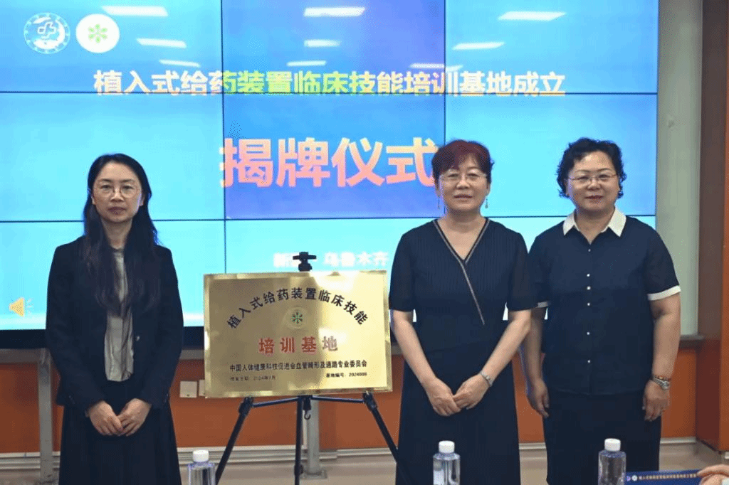 新医大一附院植入式给药装置临床技能培训基地设在肿瘤中心,所辖肿瘤中心、乳腺外科、胰腺外科、骨肿瘤科、胸外科、介入科、护理部静脉治疗专业组等临床实践科室,承担着全疆静脉治疗相关教学、科研、会诊等工作。该基地的成立标志着医院通过规范全程管理,将输液港技术应用推广至全疆各地州市县医院,为需要长期治疗的患者提供方便安全、舒适美观的输液通道。