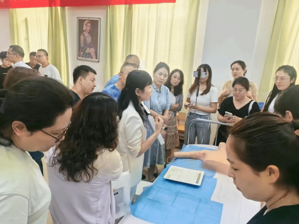 培训班上,上海复旦大学附属肿瘤医院介入治疗科许立超教授、山东大学齐鲁医院PICC门诊护士长高伟教授就胸壁、上臂不同植入式给药装置在临床中的应用进行授课,并分享了多年的置管经验。新医大一附院腹部超声诊断科主任医师王晓荣、乳腺外科副主任医师马方婧、护理部科护士长宋蓓、肿瘤中心一科护士长陈瑞、乳腺外科护士长王海燕就植入式给药装置相关应用解剖、血管超声在植入式给药装置临床应用中的意义、上臂植入式给药装置ECG定位原理和操作方法、上臂植入式给药装置常见并发症的预防和处理及上臂植入式给药装置患者健康教育等内容与学员进行分享交流。