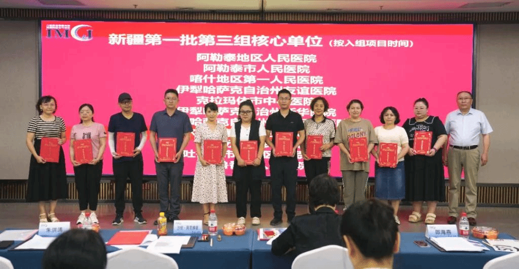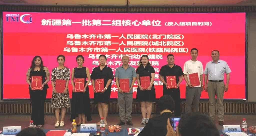 会上为新疆医科大学第一附属医院颁发全国儿童疾病综合管理IMCI-D项目新疆分中心证书。分中心负责人沙坎·阿克纳依副主任医师为全疆首批参与项目的52家核心单位颁发证书。