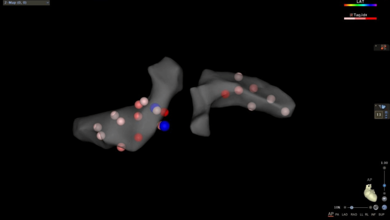 新医大一附院心脏起搏电生理科汤宝鹏教授团队为患者进行经皮肤交感活性记录仪检测,发现患者室性心动过速发作时交感活性显著升高,进一步明确了患者反复出现室速等恶性心律失常与交感神经活性增强相关。团队归纳总结了患者病史、发作特点及现有检查结果并加以缜密分析,决定开展肾交感神经消融(RDN)来治疗该患者反复发作的交感电风暴。