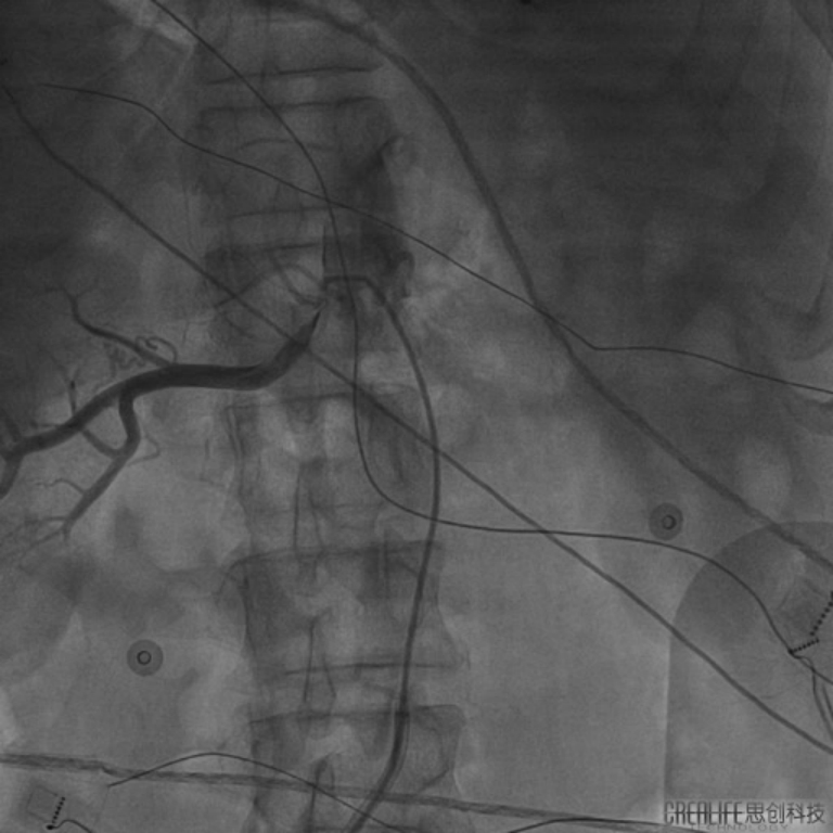 (图为手术过程中对患者进行肾动脉造影定位)