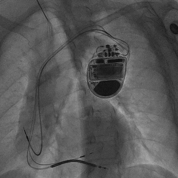 拔除无导线起搏器后植入左束支CRTD的术后影像