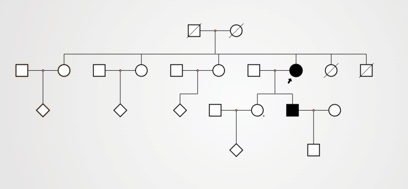 患者家系图(其他近亲属待检测)。新疆医科大学第一附属医院供图