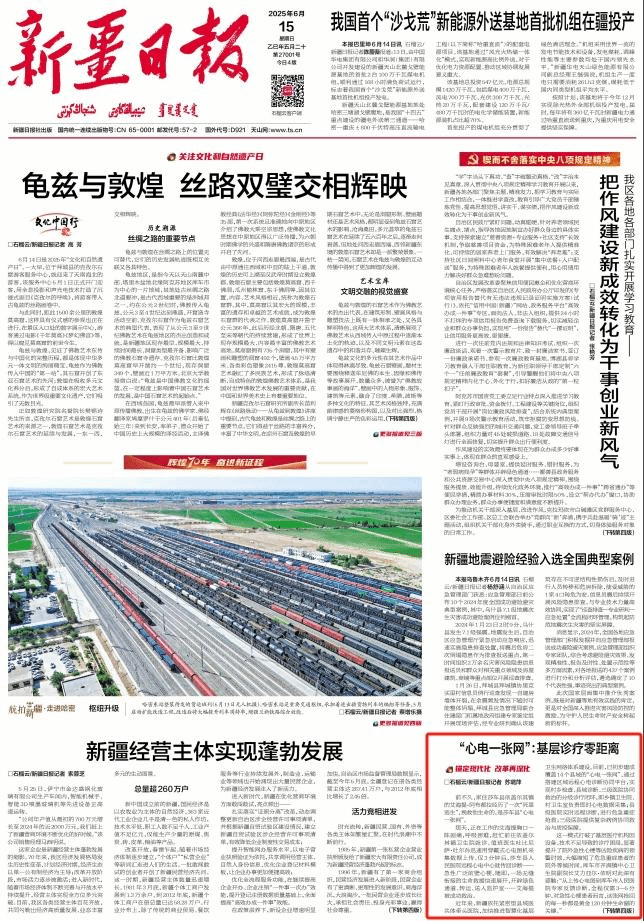 截至目前,新疆地区“心电一张网”平台近一半心电图数据来自基层,预警率近4.45%,真正让农牧民在家门口获得与三甲医院同质化的心电诊断服务。