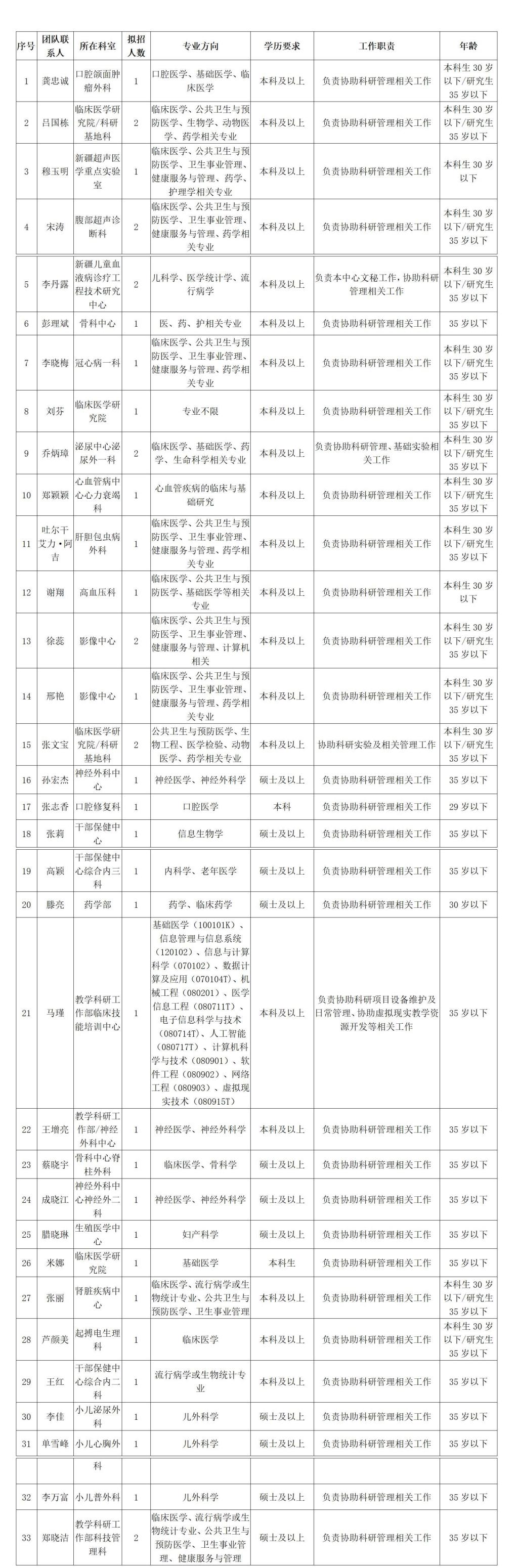 为贯彻落实《关于做好科研助理岗位开发的通知》精神,结合实际工作需要,新疆医科大学第一附属医院现面向社会招聘科研助理岗位人员40名,现公告如下: