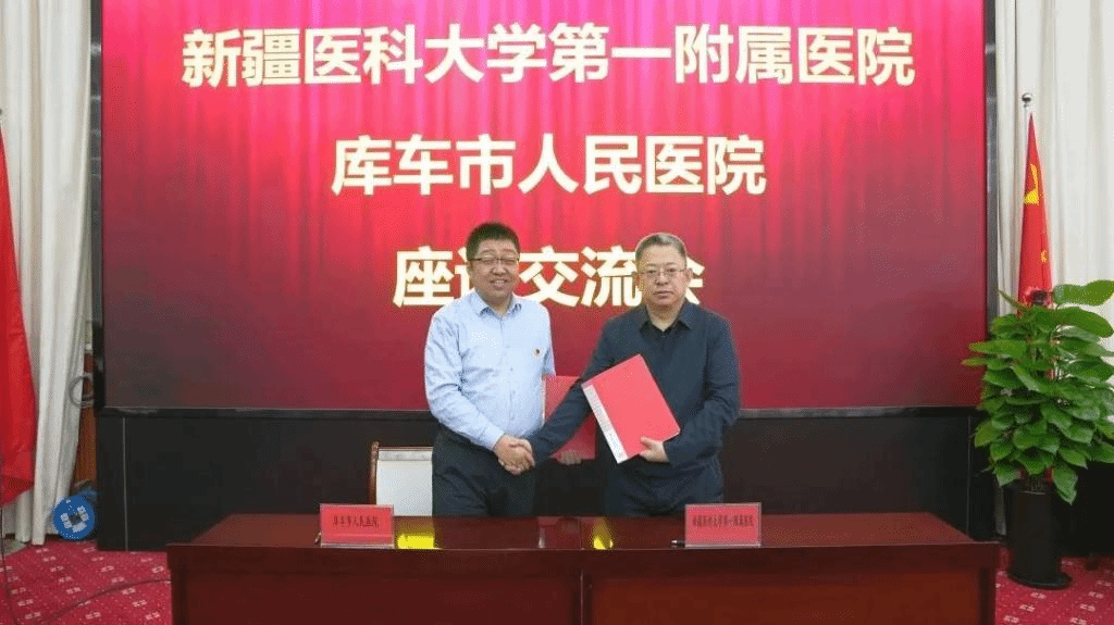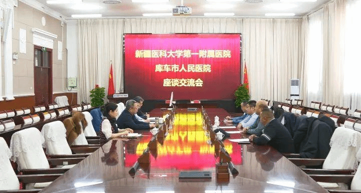 新疆医科大学第一附属医院党委副书记、院长陆晨首先对库车市人民医院党委书记第继周一行的到来表示热烈欢迎,希望两院继续强化合作,以医联体建设为抓手,推进各项合作走深走实。