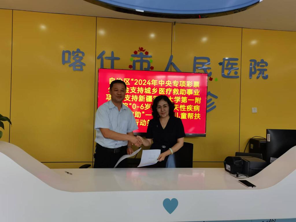 为全力推进医疗帮扶工作的有序进行,在新医大一附院陆晨院长的支持下,一附院牵头联合其他附属医院共同组建帮扶团队,通过“以点带面、点对点结对、点带面辐射模式”深入开展对口帮扶工作。2023年4月29日,喀什市人民医院聘请新疆医科大学第一附属医院医务部主任、胰腺外科副主任林海专家为名誉院长,同时与新疆医科大学第一附属医院泌尿外科、产科、风湿免疫科、内分泌科、心血管内科、神经内科、肾病科,附属肿瘤医院乳腺头颈外科、胸外科,附属中医医院的康复科、第六附属医院的关节外科等10位医疗专家签署了临床科室名誉主任协议。之后,新医大一附院还与喀什市人民医院签署了“0-6岁儿童先天性疾病筛查及救助”协议。