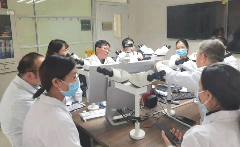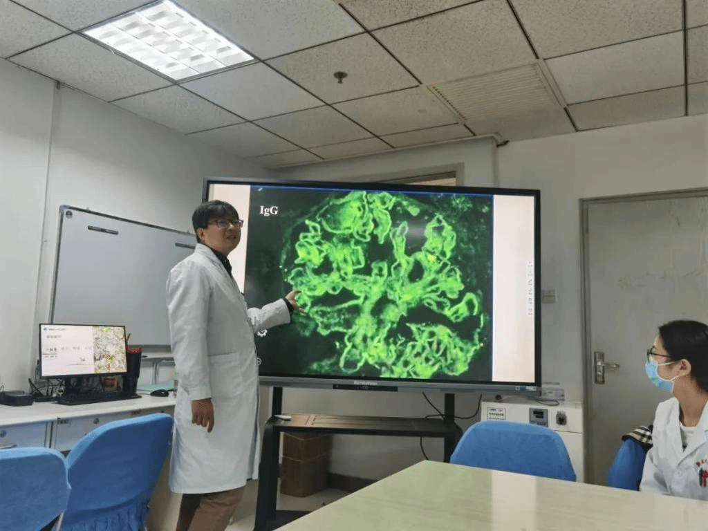 工作中,邹古明教授与肾病中心医务人员通力合作,利用其丰富的经验和专业知识,为肾脏病理阅片和诊断提供指导。他与新医大一附院病理科医生共同研究复杂病例,分析并解释组织学切片的病变特征,通过讨论形成共识,为患者最佳的治疗方案提供依据。