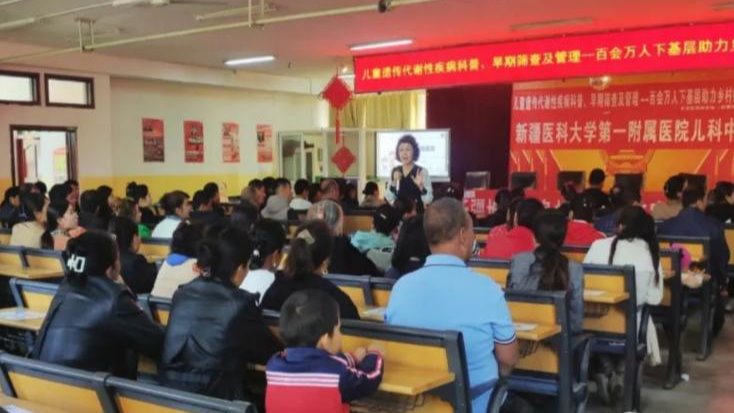 为响应国务院颁布的《健康中国2030》号召,更好地服务南疆地区遗传代谢病患儿,近日,自治区科协义诊团队来到布亚乡中心小学和阿亚格苏勒瓦村开展义诊活动。米热古丽·买买提教授为群众科普儿童遗传代谢病。张雁超 摄在为期三天的义诊活动中,自治区科协义诊团队为布亚乡儿童做了关于遗传代谢性疾病及矮小症儿童的全面筛查,新疆医科大学第一附属医院儿内四科主任米热古丽·买买提教授为布亚乡群众科普儿童遗传代谢病早期筛查及管...查看详情 >