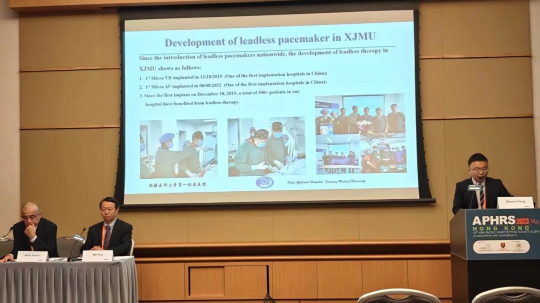 近日,新疆医科大学第一附属医院汤宝鹏教授团队的学术成果在中国香港举办的第16届亚太心律学会(Asia Pacific Heart Rhythm Society ,APHRS)会议上获得发言邀请。此次会议共有来自全球40多个国家的学者出席,我院汤宝鹏教授团队成员在前期的论文初选中胜出,共有7名成员获得大会发言邀请,最终选派由汤宝鹏教授指导博士研究生董震宇、芦颜美教授指导博士研究生吕华胜参加现场展示。董震宇的报告“The leadless pacemaker implan...查看详情 >